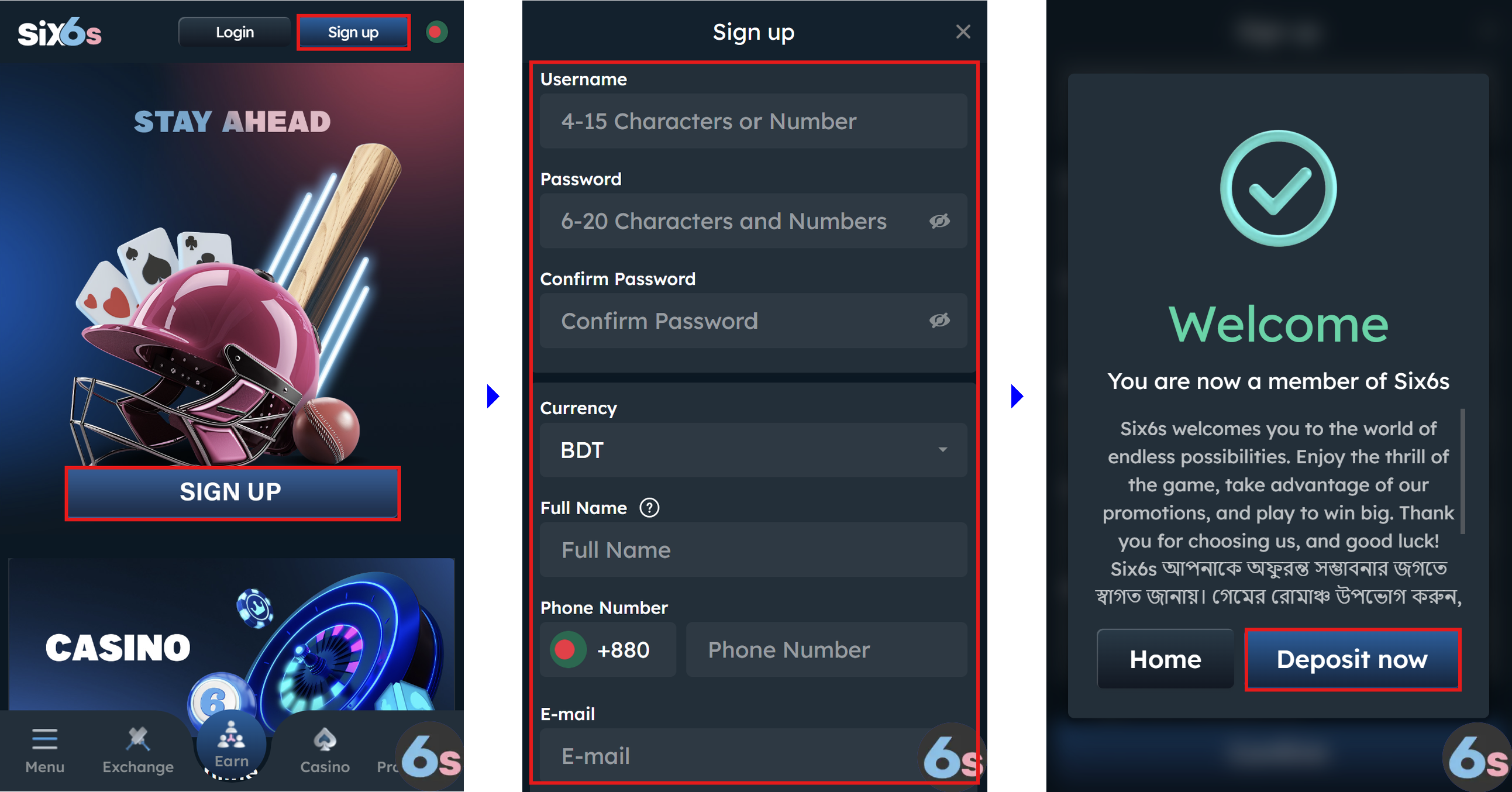 Six6s–তে সাইন আপ করা খুবই সহজ ! নিম্মে ৩টি সহজ কাজ :